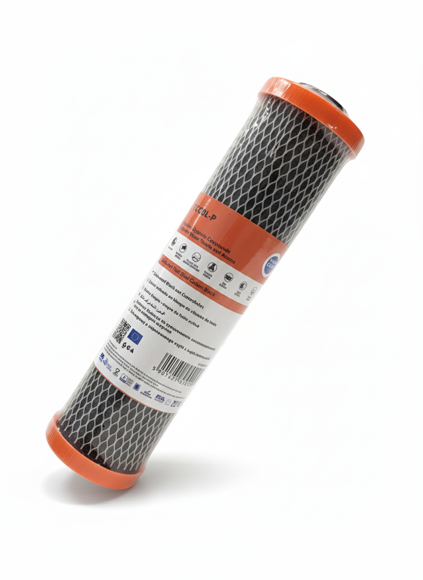 Wkład, filtr blok węglowy FCCBL-P Aquafilter 10 cali na chlor w wodzie.